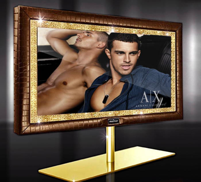55-дюймовый телевизор в корпусе, отлитом из 28 килограмм 18-каратного розового золота и украшенный 72 бриллиантами.