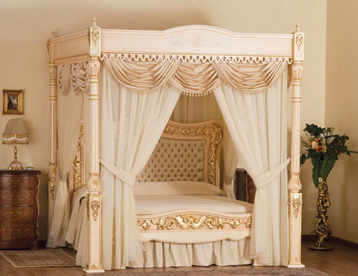 Кровать, сделанная из лучших сортов ясеня, каштанового и вишневого деревьев и украшенная 107 килограммами 24-каратного золота.